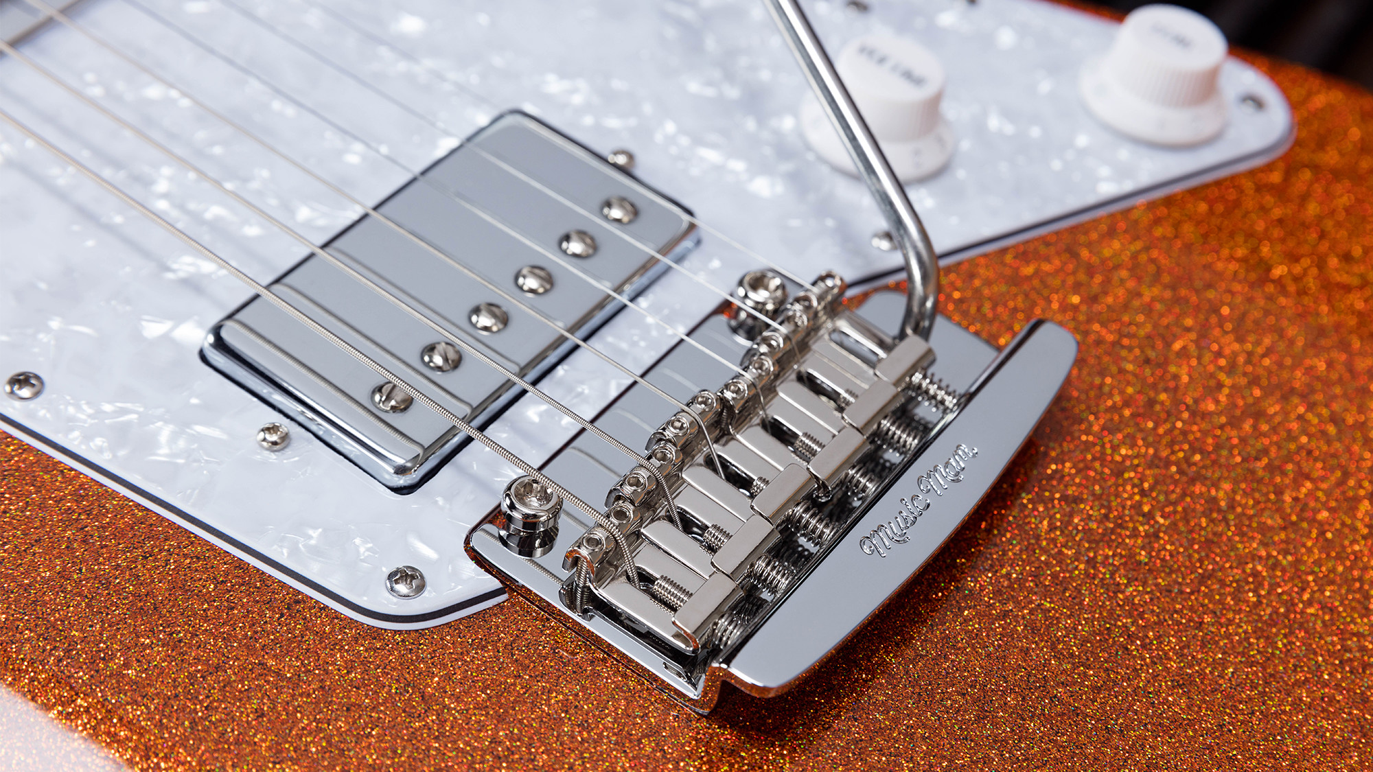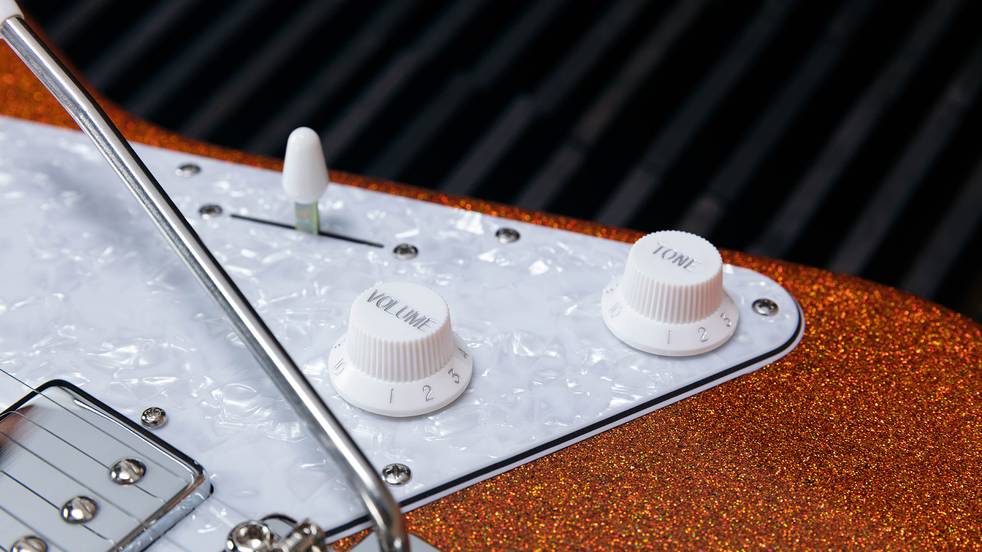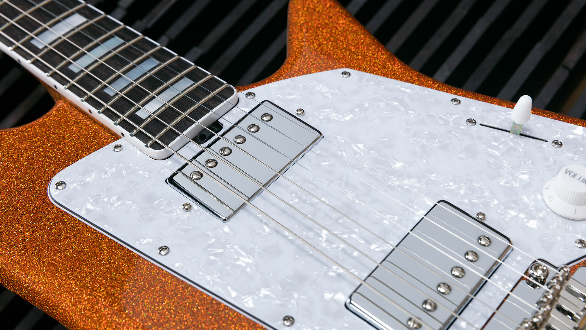 Body in mogano leggero con doppio Humbucker ed esclusiva finitura Orange Crush sparkle.