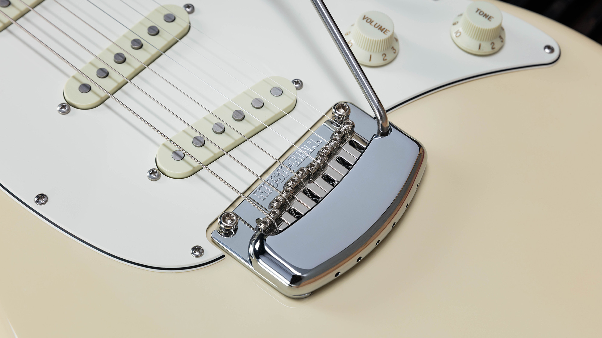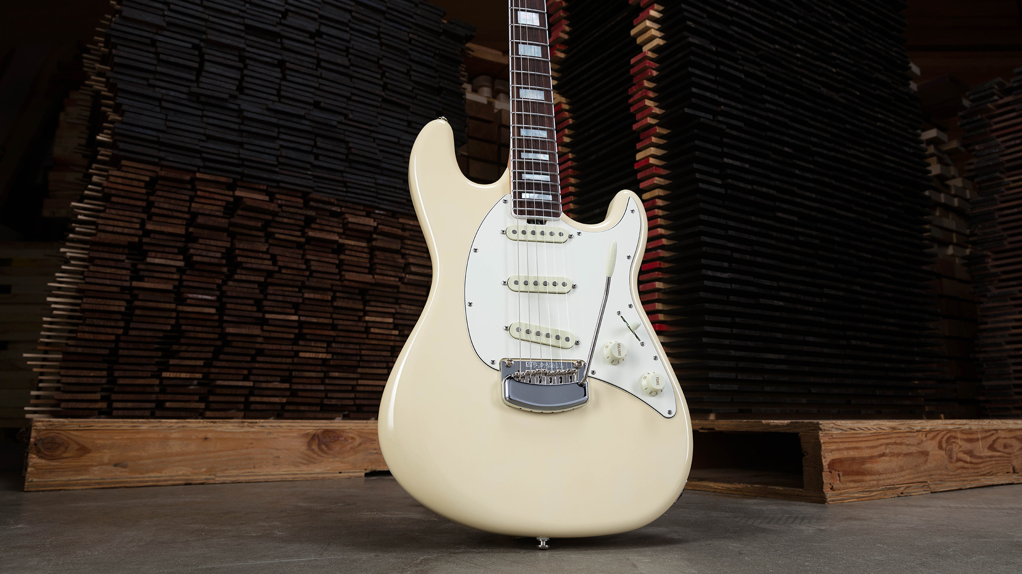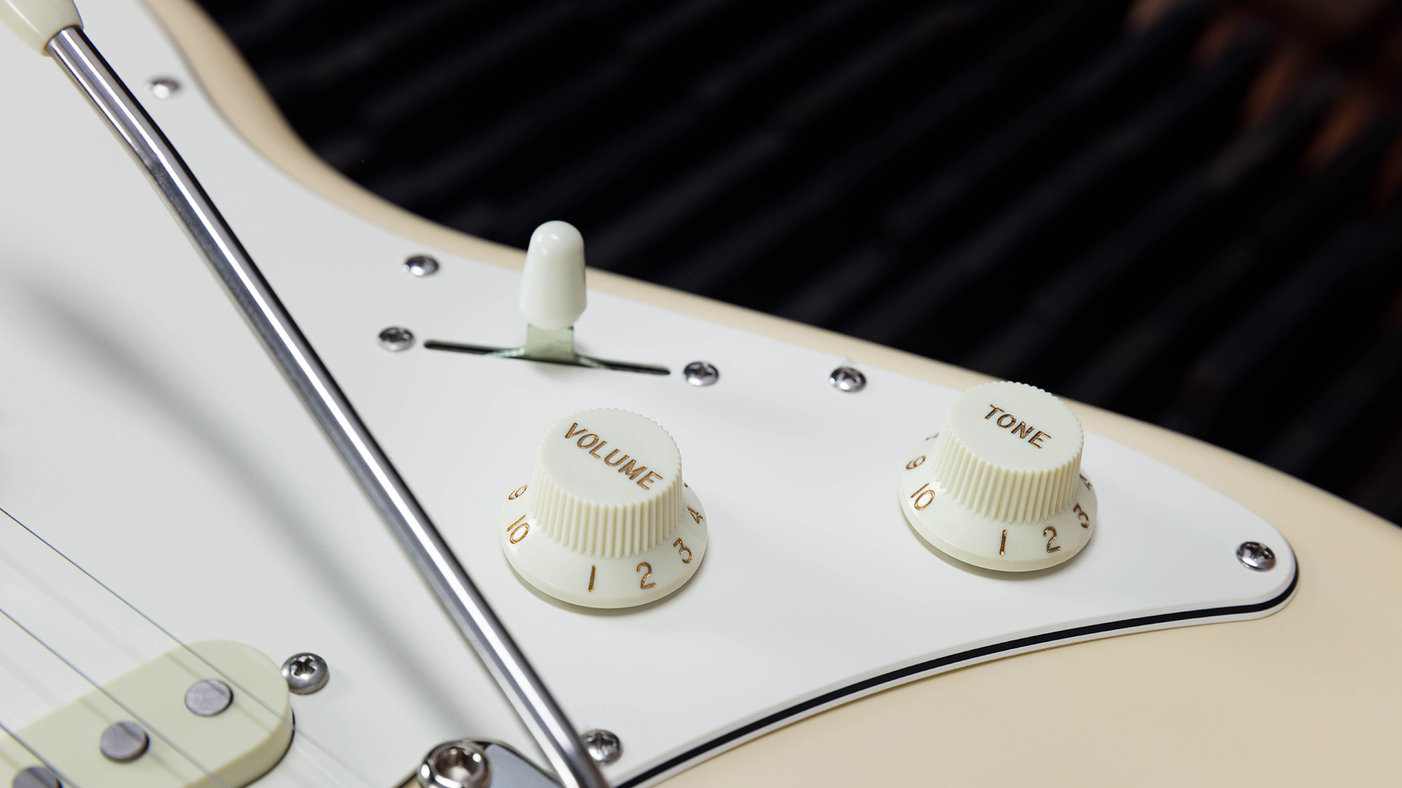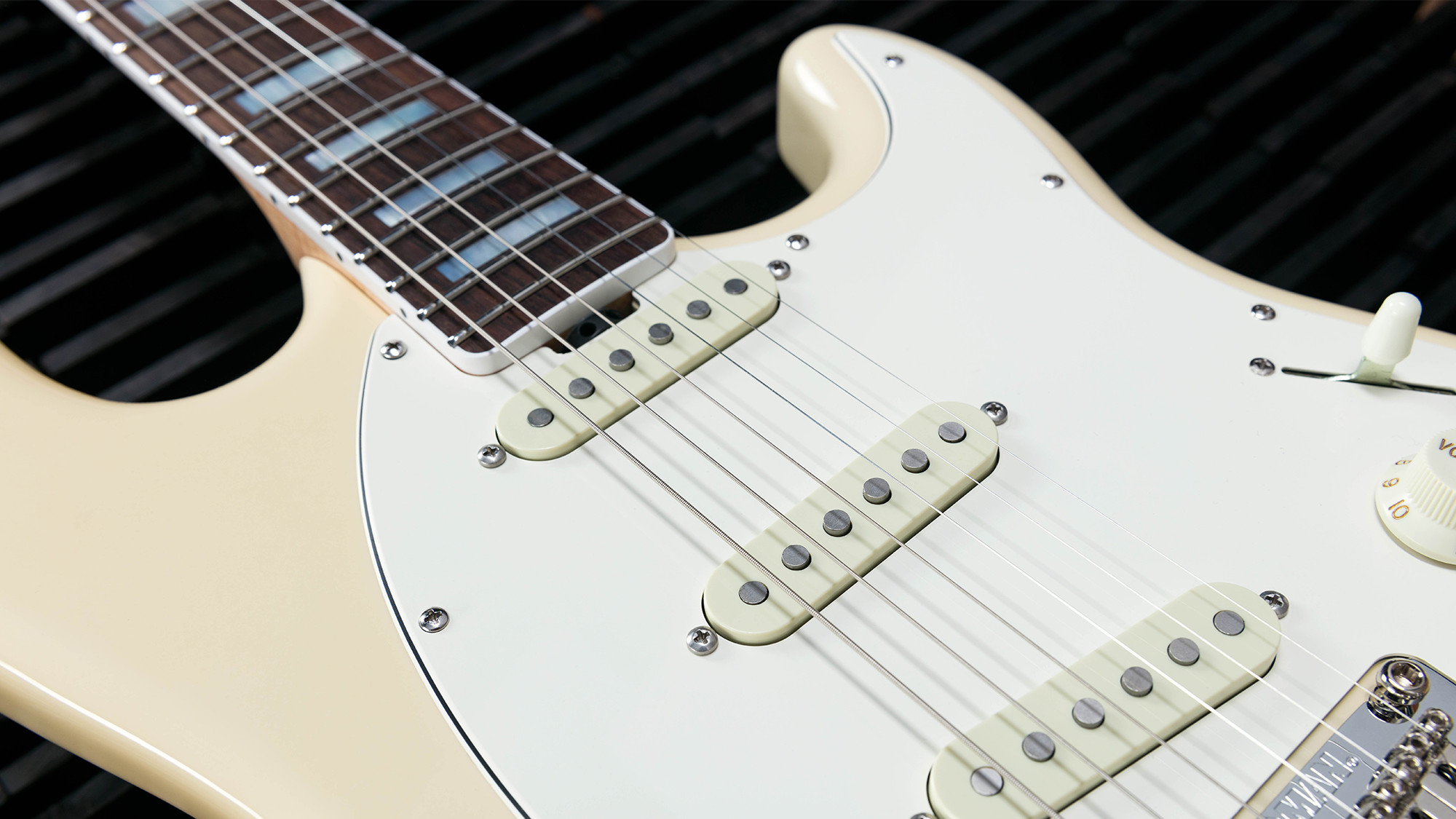 Body in Ontano leggero con finitura custom “Cornsilk” bianco-opaco e rivestimento in poliestere trasparente.