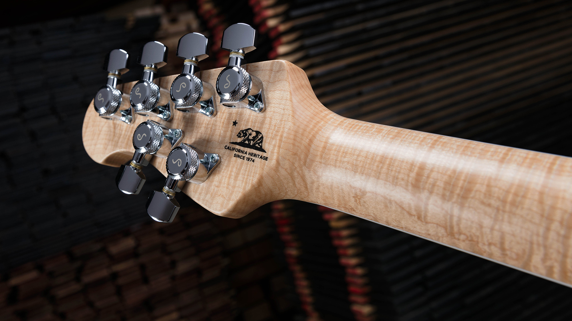 Il manico in acero figurato è messo in risalto da una paletta verniciata abbinata con meccaniche Schaller autobloccanti.