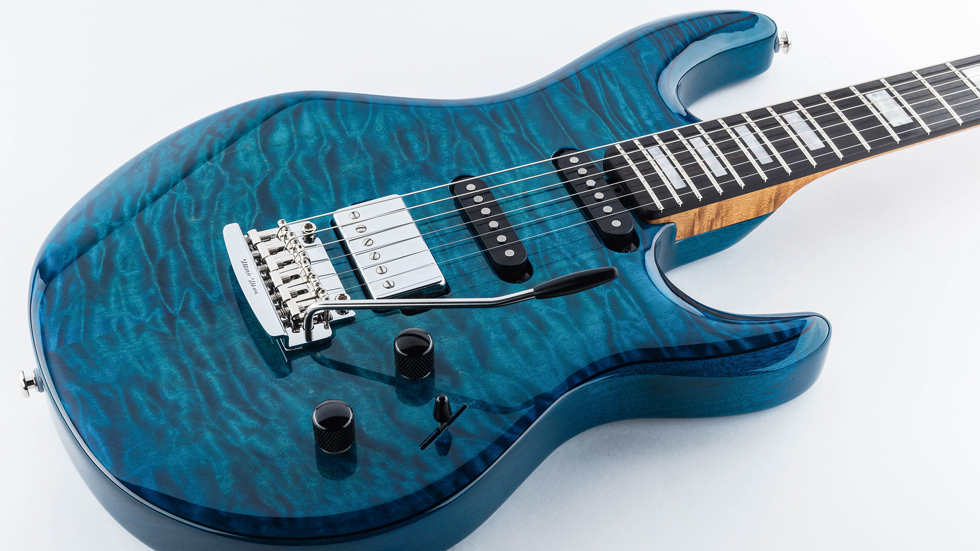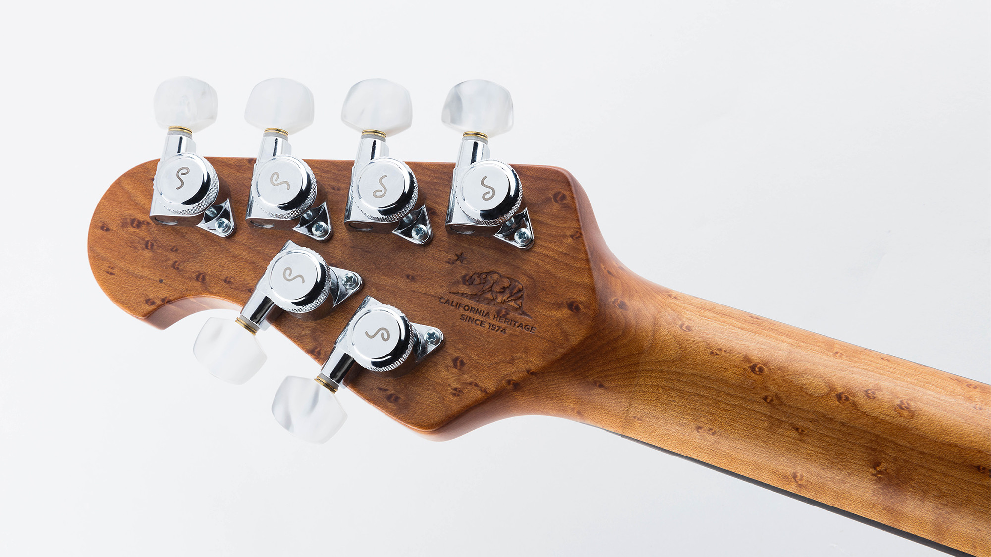 Manico e tastiera in acero roasted con meccaniche Schaller autobloccanti.