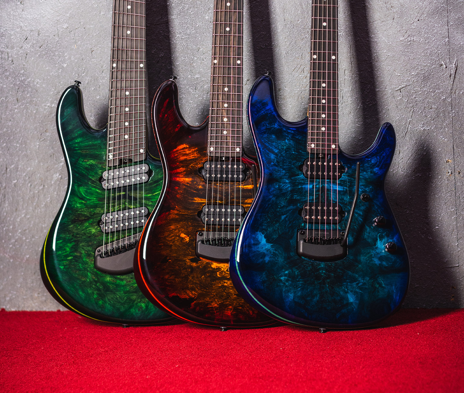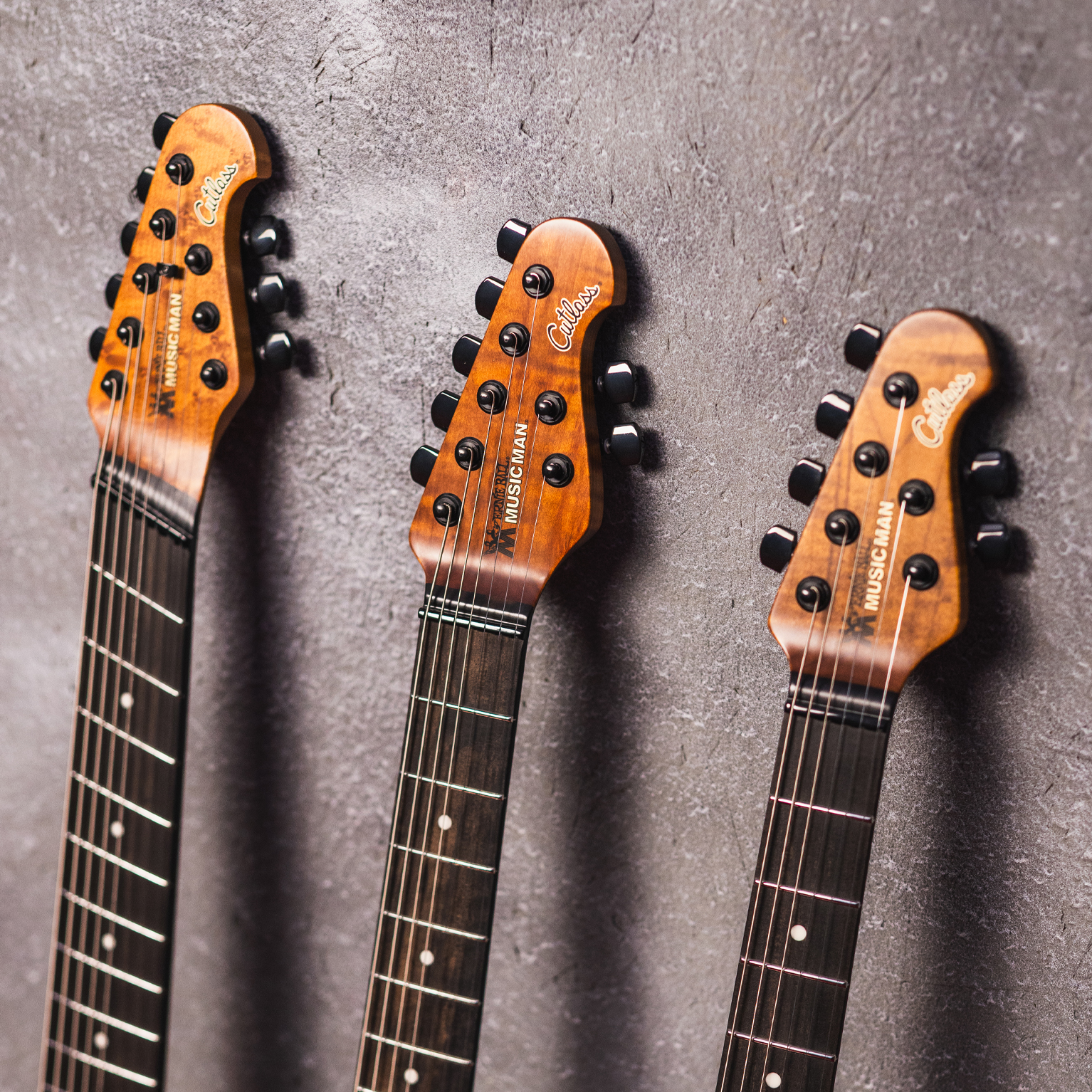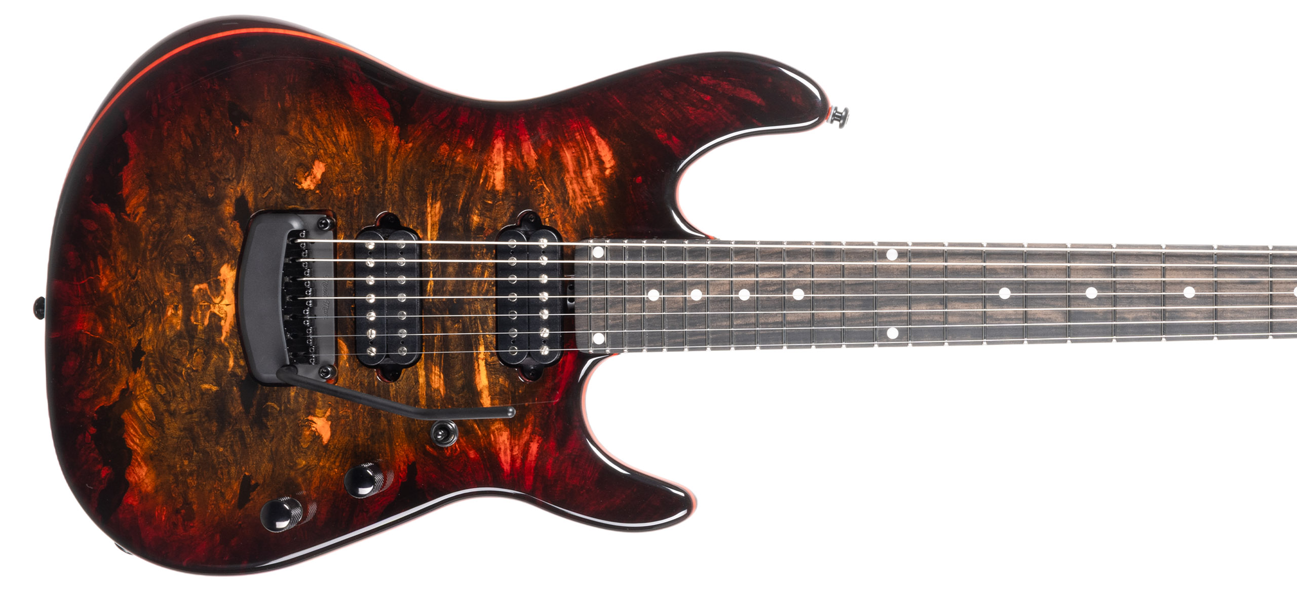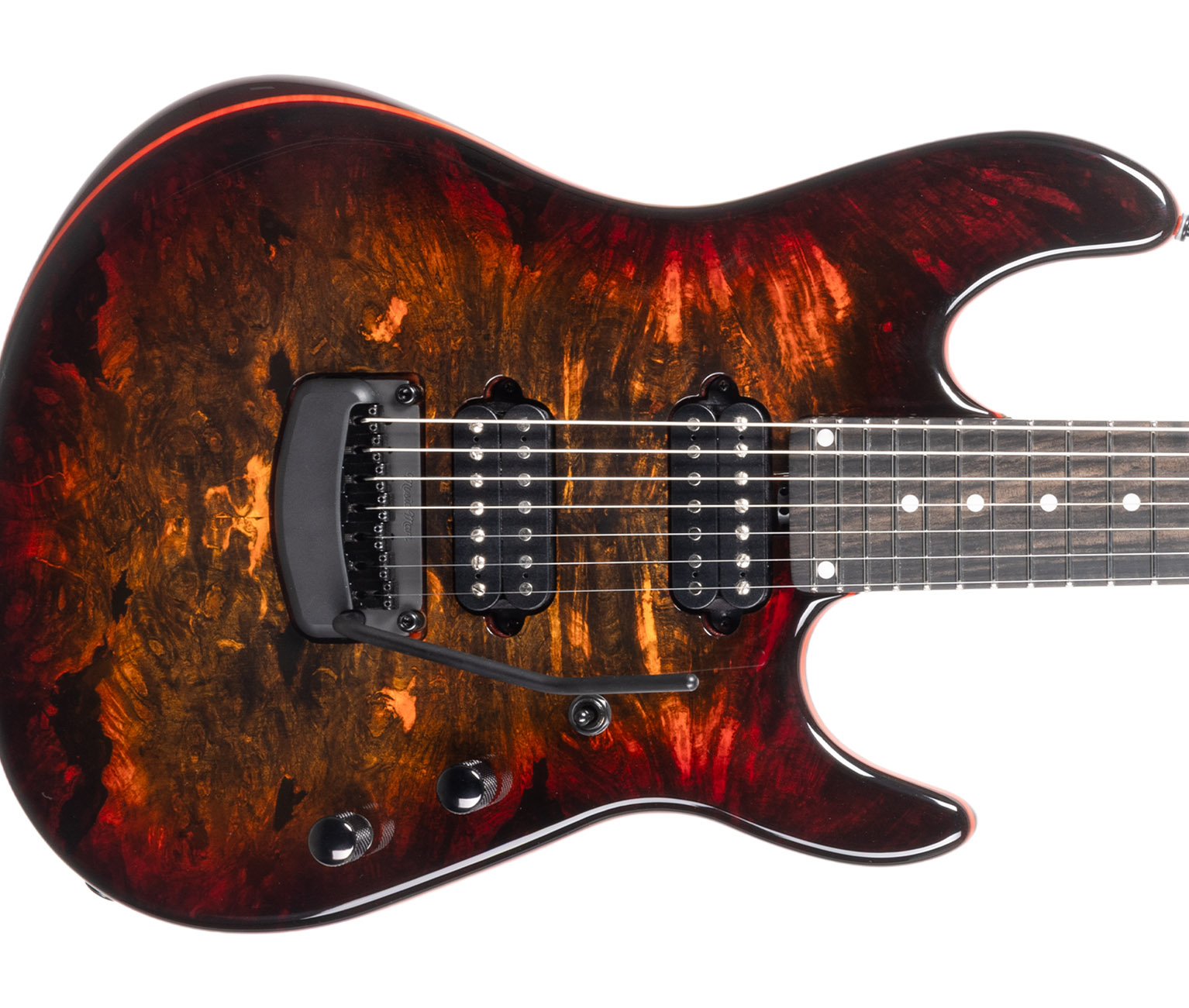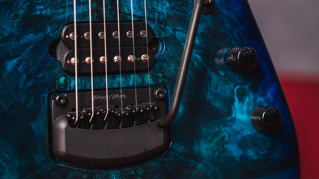 | Bridge | Tremolo flottante Music Man® custom, in acciaio temprato nero con sellette in acciaio nero | |